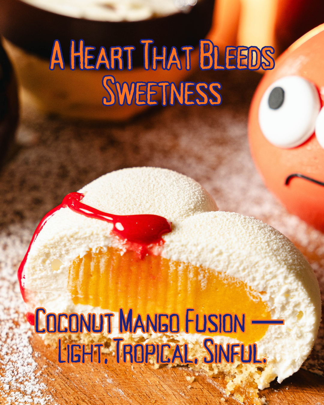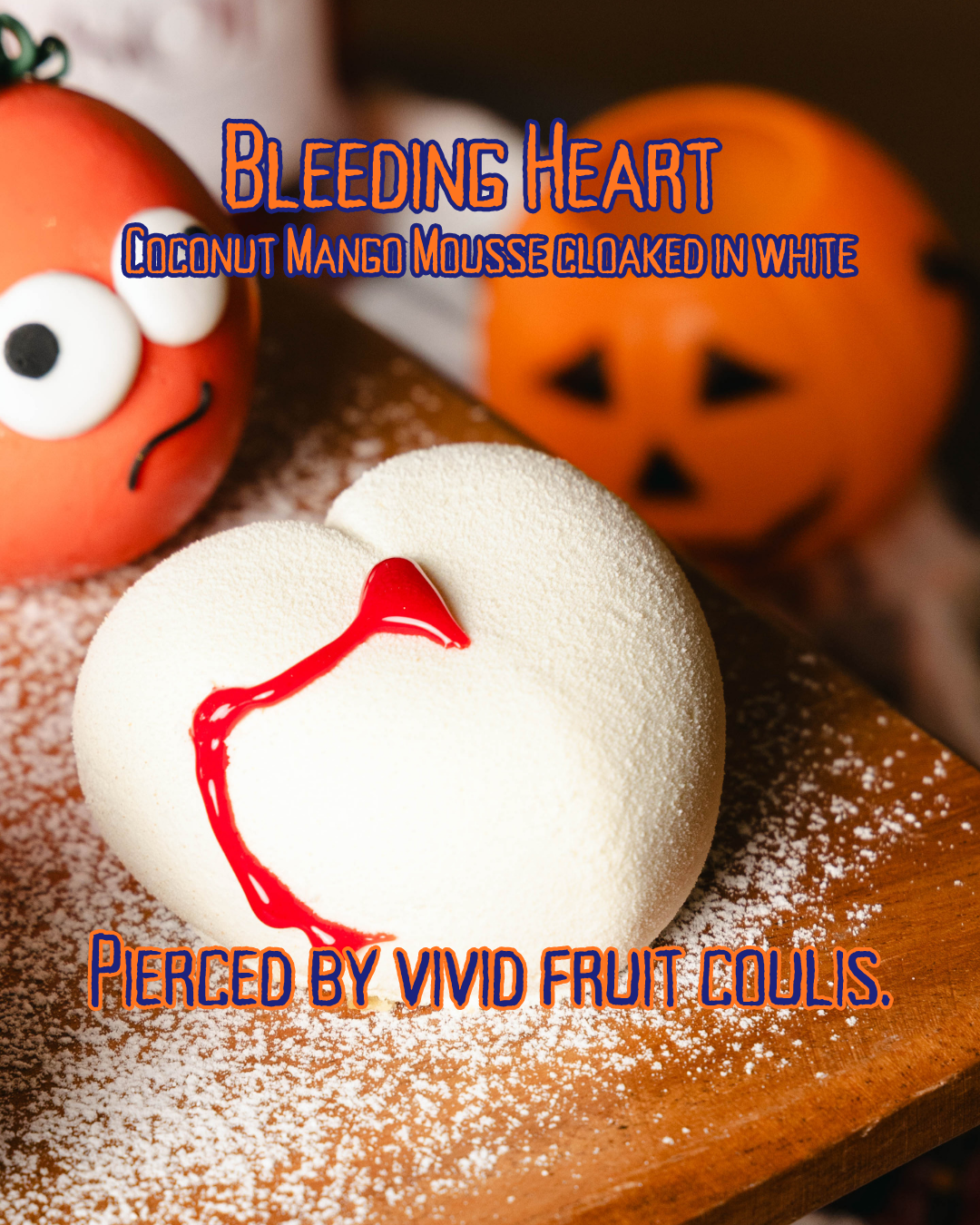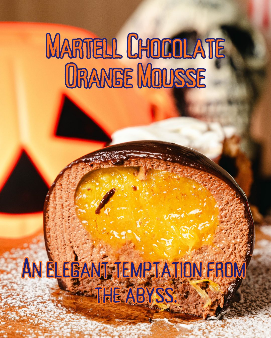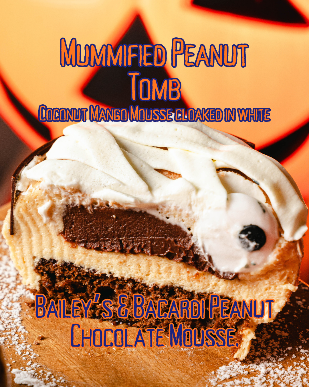 Our Halloween creations are delicate mousse-based desserts — please handle with care. For the best tasting experience, pair with a light tea or champagne to complement their subtle liquor notes and layered sweetness.